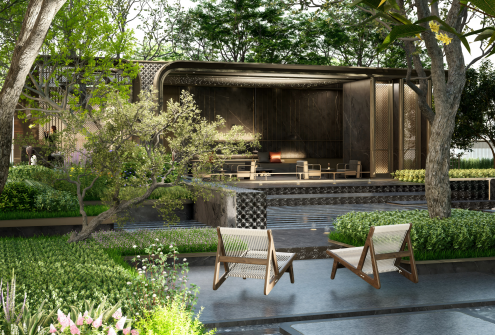 廣合·桂語金蘭引入綠城管理獨創的“春風六境”理念,通過精心布局的景觀節點,營造出“名門貴府、南橋話茶、花谷迷宮、倚畫棲林、琉光化語、蘭亭雅集”六重意境,讓每一次歸家都成為一場穿越風景的旅行,讓居住者于日常生活中感受度假的愜意與文化的雅致。